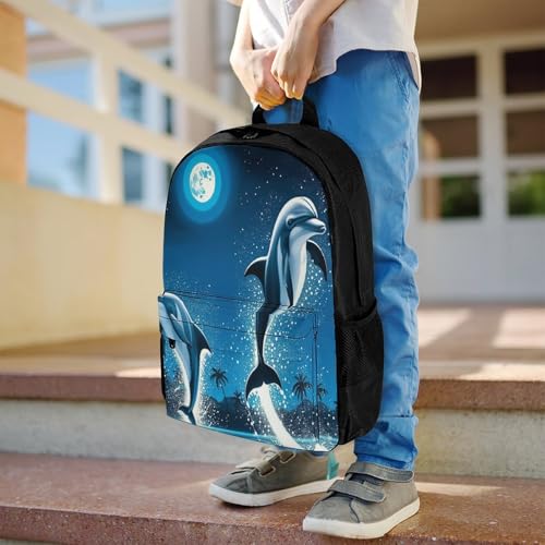 Supdreamc Backpack Anti-Theft Multipurpose Large Capacity Carry On Bag - Dolphin Blue Great Water Of Waves Sea Moon Camping Outdoor Backpack With Side Pockets 3