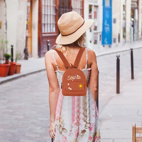 HOT ! Pekdi Personalized Mini Backpack with Embroidered Name Corduroy Backpack Monogram Book Bag with Hand Embroidery Pattern Lightweight Daypack Casual Travel Bag for Sports Dance Gym