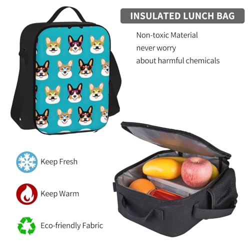 Cute Corgi Glasses And Mustaches Print 3 Piece Set Backpack, Lunch Bag, Pencil Case, Cute Sturdy For College And Travel 4