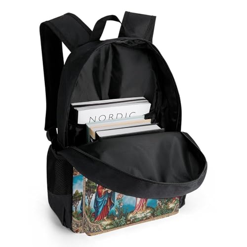 Men Women Polyester Catholic Saints Art Daypack Backpack Large Capacity Carry On Bag With Smooth Zippers for Hiking Picnic Walking Cycling 5