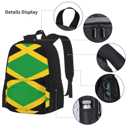 Jamaica Flag Print 3 Piece Set Backpack, Lunch Bag, Pencil Case, Cute Sturdy For College And Travel 5