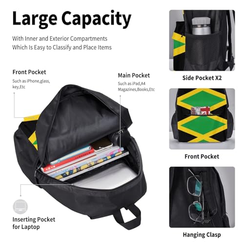 Jamaica Flag Print 3 Piece Set Backpack, Lunch Bag, Pencil Case, Cute Sturdy For College And Travel 4