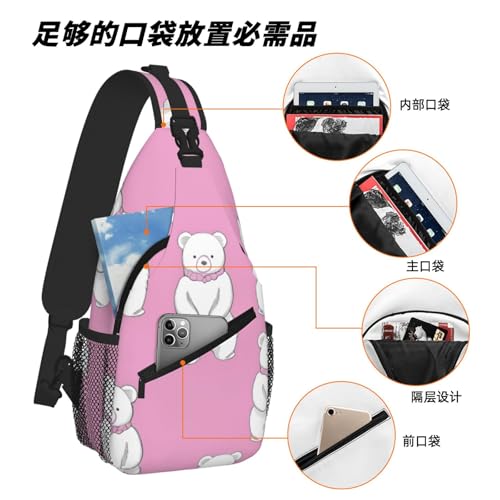 HOT ! Polar Bear Red Printing Cross Chest Bag Diagonally Sling Backpack Crossbody Shoulder Bags Sling Travel Hiking Daypack