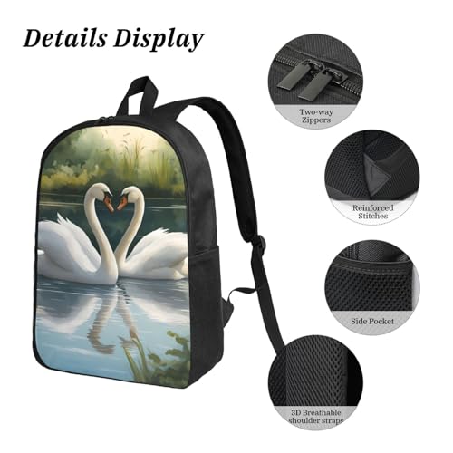• Laptop Compatible of Backpack: The Lightweight Beautiful White Swans on The Lake print Bookbag includes a spacious compartment that can accommodate a 15-inch laptop, making it suitable for both work and leisure activities.