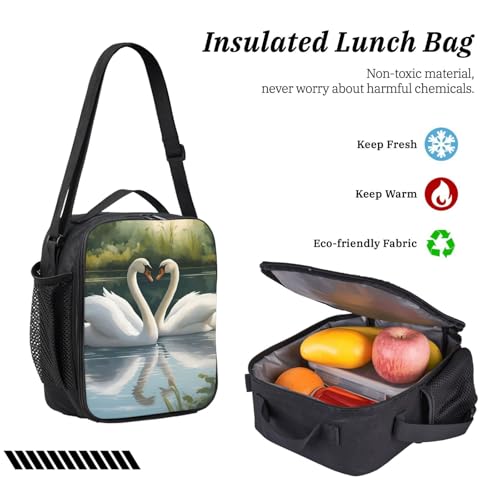 • Daily Essentials: 3PCS Beautiful White Swans on The Lake print Backpack for Men Women features a backpack measuring 12.6x5.1x17 inches, paired with a lunch tote at 7.9x3.5x4.8 inches and a pencil case sized 8.7x1.8x4.3 inches for travel or work.