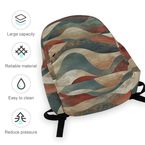 Earth Tones And Waves Printed Backpack Water-Resistant Pack Bulk Backpack Lightweight Travel Backpack 1