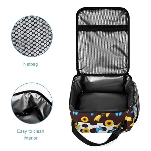 Backpack Lightweight Butterfly Sunflower Cow Print Bookbag with Lunch Box Storage Bags Backpack Set Daypack with Lunch Bag and Cosmetic Bag 5
