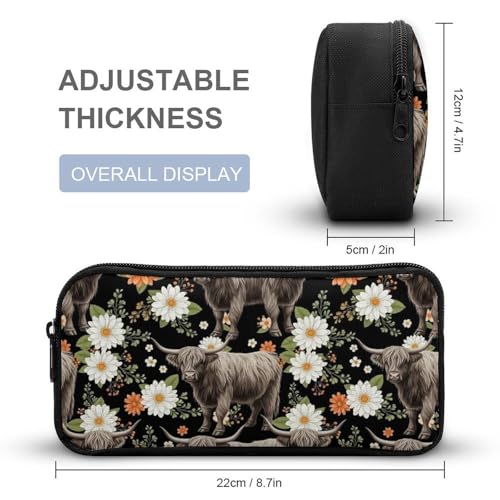 Backpack Bookbag Set Floral Cattle Highland Cow (3) Backpack with Lunch Bags and Makeup Bag Shoulder Bag with Lunch Box Storage Bags 5