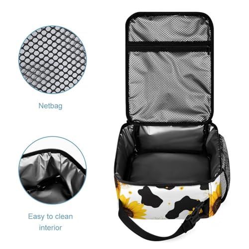 Travel Bookbag Set with Lunch Bags and Cosmetic Bag 80s Vintage Sunflower Cow Print Backpack with Lunch Box Storage Bag Backpack Bookbag Set 6