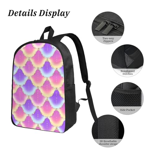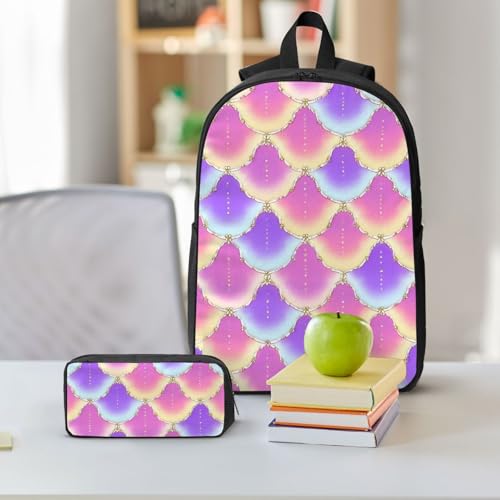HOT ! Backpack Set - With Lunch Bag & Pencil Case Supplies For Men Women (for Colorful Purple Pink Mermaid Scale)