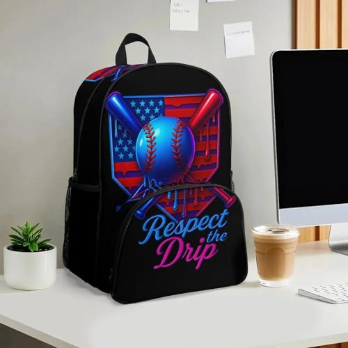 HOT ! Baseball Respect The Drip American Flag Game Day Backpack Large Capacity Leisure Travel Backpack Outgoing Daypack 17.3X12.5X7.5 Inch