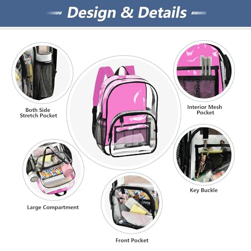 Clear Bag for Women Travel Rose Pink Kids Backpack Boys Girls See through Approved Bag 6