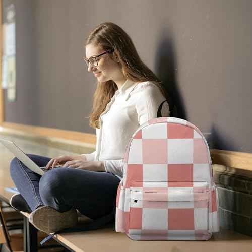 Fashion Pink Checkered Backpack for Women, Adults Multi-functional Bag with Breathable Shoulder Strap, Reusable Large Capacity Travel Daypack 6