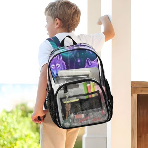 Clear Backpack for Women Kids Girls Backpack Boys Approved Plastic Bag Large Majestic Neon Wolves Heads 4