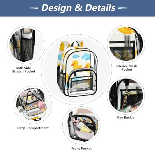 More information about Cute Yellow Ducks Women Clear Backpack Cute Kids Girls Backpack Boys See through Shoulder Bag