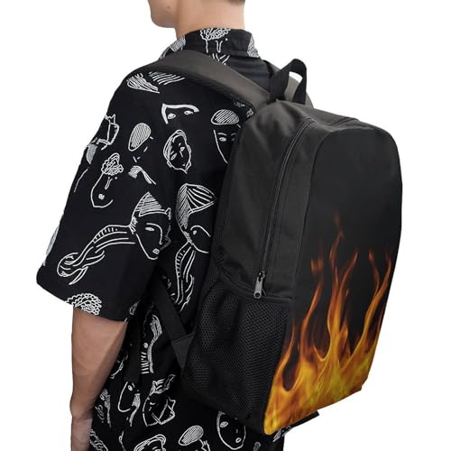 Adults Backpack for Women Men, Burning Fire Flame on Black Lightweight Spacious Travel Daypack, Reusable Outdoor Shoulder Bags for Hiking, Picnic 7