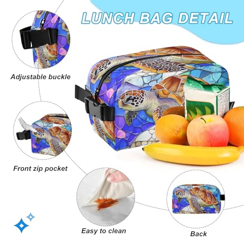 Travel Backpack Lunch Bag Set for Hiking Picnic, Backpacks with Insulated Lunch Box Stained Glass Turtle Print 5