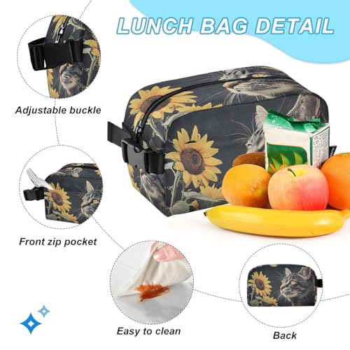 Backpack Lunch Bag Set for Travel Hiking Picnic, Cat Sunflower Print Backpacks with Insulated Lunch Box 5