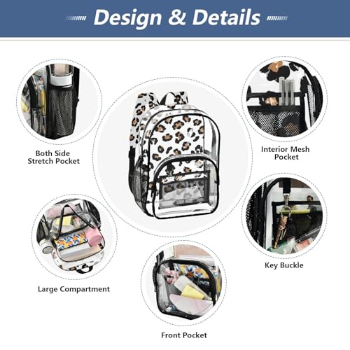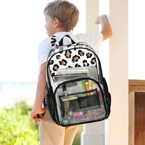 Clear Backpack for Women Boys Backpacks for Girls Approved Transparent Bag Black Brown Leopard Spots White 4