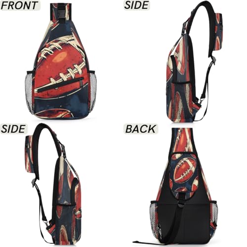 HOT ! Rugby Ball Sling Bag Crossbody Sling Backpack Hiking Daypack for Men Women Chest Bag for Travel Running Football Print