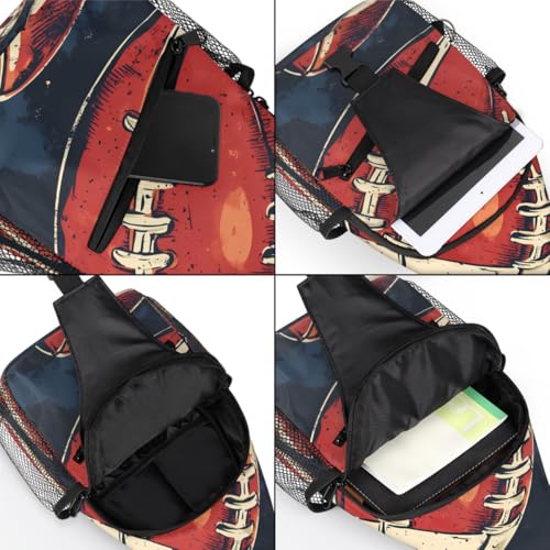 Rugby Ball Sling Bag Crossbody Sling Backpack Hiking Daypack for Men Women Chest Bag for Travel Running Football Print 7