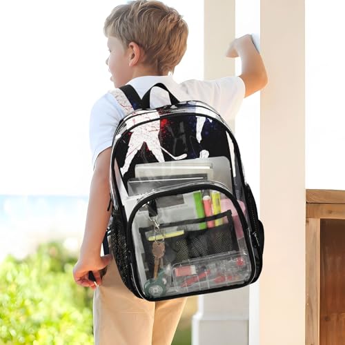 Funny Hockey Players Print Women Clear Backpack Cute Kids Girls Backpack Boys Large Plastic Approved Bag 6