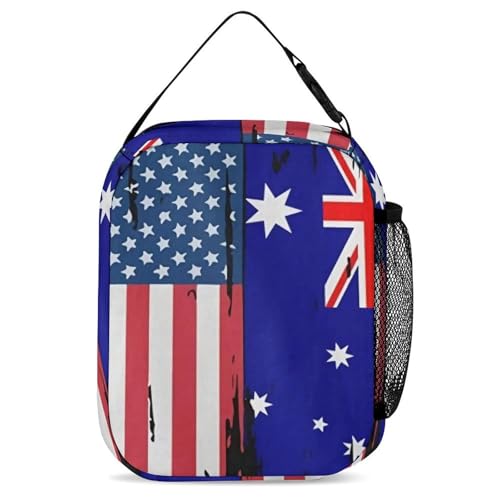 U.S.A And Australian Flag 3 PCS Backpack Set Casual Daypack with Insulated Lunch Bag & Pencil Case 1