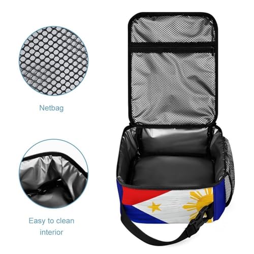 More information about Philippines Flag Wood Patterning 3 PCS Backpack Set Casual Daypack with Insulated Lunch Bag & Pencil Case