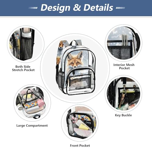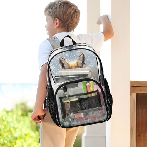 More information about Clear Backpack Women Cute Body Ears Fox Snowy Boys Backpacks for Girls Large Plastic Approved Bag