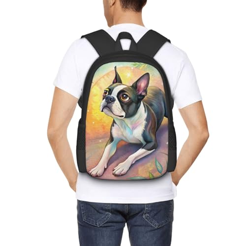 Large Capacity Watercolor Painting Boston Terrier Dog Boho Style Pastel Backpack Multipurpose Bag Zipper Unisex 17 in 4