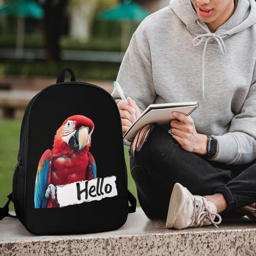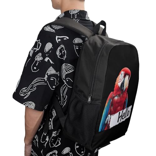 HOT ! Parrot Say Hello Travel Backpack 17 Inch Casual Daypack Shoulder Bag with Adjustable Shoulder Straps