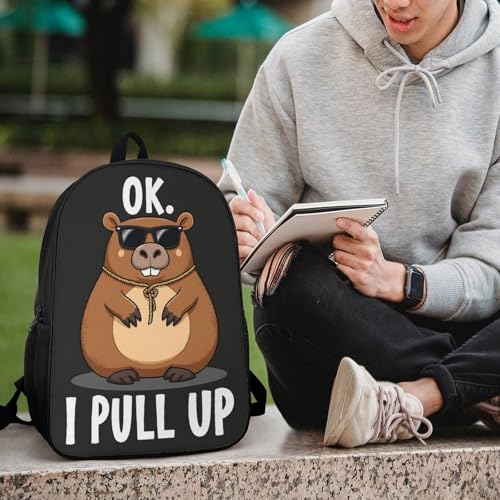 17 Inch Carry On Bookbag with Adjustable Shoulder Straps OK I Pull Up Capybara (1) Outdoor Travel Gym Backpack Unisex-Adult Sport Bag 4