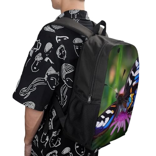HOT ! Colorful Butterfly Backpack - Durable 600D Polyester, 17 Inch Backpack with Ergonomic Adjustable Straps, Lightweight Travel Bag for Men & Women