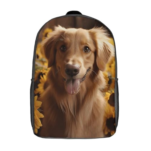 HOT ! Golden Retriever Sunflower Backpack - Durable 600D Polyester, 17 Inch Backpack with Ergonomic Adjustable Straps, Lightweight Travel Bag for Men & Women