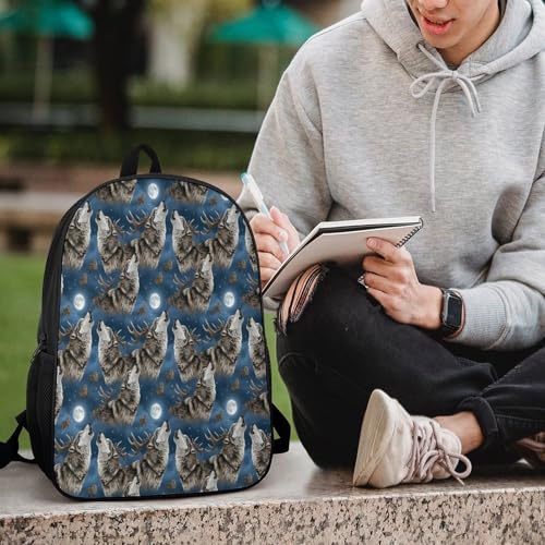 HOT ! Mens Full Moon Deer Wolf Backpack, Adjustable Spacious Shoulder Bag with Pockets and Handle, Cool Multi-Functional Backpacks for Gym