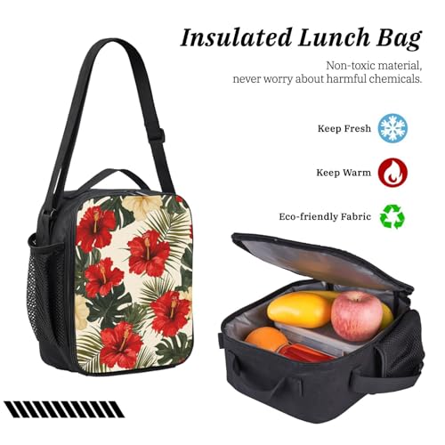 • Reusable lunch bag: three-layer insulated design to keep food fresh. Includes an elastic strap for utensils, one main compartment with 4 inner pockets, a right-side exterior pocket, and an adjustable shoulder strap for easy carrying.