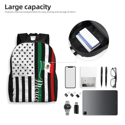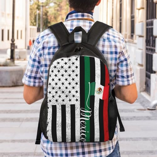 Mexican American Flag Cinco Mexico Flag USA Flag Backpack Simple Leisure Travel Backpack Outgoing Daypack 16 inch 7