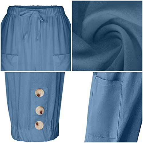 Women's Cropped Pants High Waist Drawstring Capri Pants Wide Leg with Pockets 7