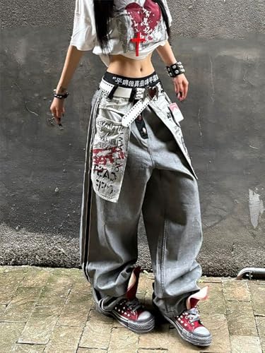More information about Y2k Vintage Grunge Reverse Big Pocket Graffiti Harajuku Baggy Jeans Hiphop Punk Loose Casual Wide Leg Denim Pants