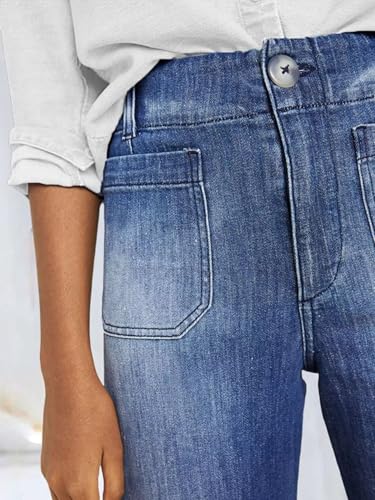 HOT ! Flamingals Women's Wide Leg Jeans High Waisted Baggy Stretchy Trendy Patch Pocket Jeans