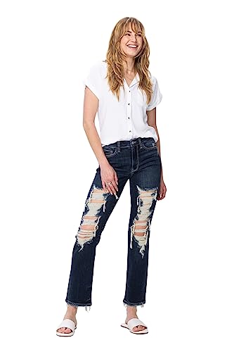 Judy Blue Women's Mid-Rise Heavy Destroy Straight Leg Jeans 4