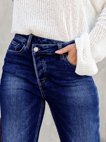 Cicy Bell Womens High Waisted Crossover Jeans 2024 Straight Leg Stretch Casual Cuffed Denim Pants 6