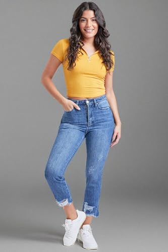 HOT ! YMI Women's Junior Hybrid Dream High-Rise Slim Straight Jean with Frayed Hem