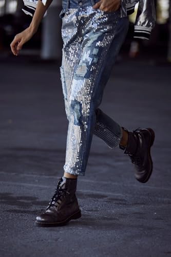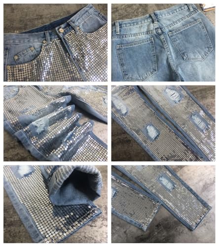More information about Women's High Waisted Jeans Baggy Metallic Glitter Straight Leg Ripped Denim Pants
