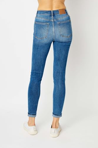 Judy Blue High Waist Cuffed Hem Skinny Jeans - Stretch Denim Comfort Fit 82449- 5