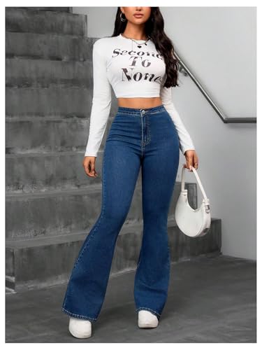 MakeMeChic Women's Casual Flare Jeans High Waist Stretch Bell Bottom Y2k Denim Pants 6