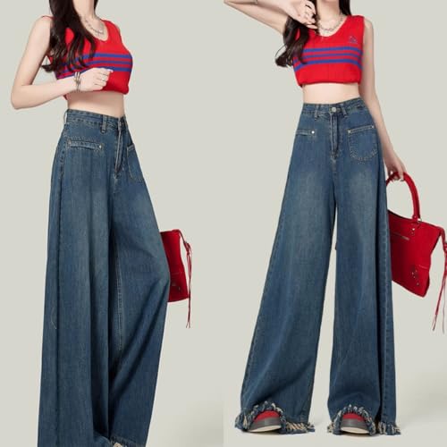 HOT ! Women's Fashion High Waist Baggy Jeans Y2K Vintage Flare Fringe Leg Casual Wide Leg Flowy Denim Pants