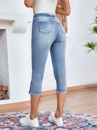 Women's Calf-Length Jeans Fashion Skinny High Stretch Elastic Waist Denim Pencil Pants Casual Slim Jeans Light Blue M 7