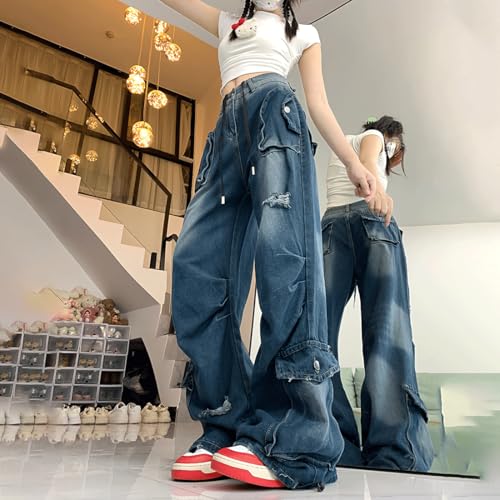 • Design: Grunge fashion drawstring pleated cargo jeans with distressed ripped decor, high waist wide leg type, goth and casual style denim pants for women and teens.