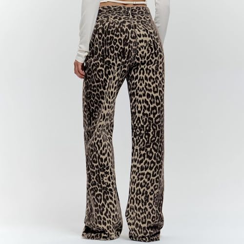 HOT ! Leopard Print Jeans for Women - Y2K Light Cheetah Print Pants, Flare Straight Leg High Waisted Pants for Women